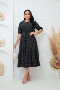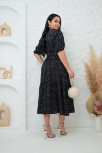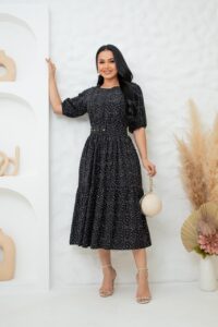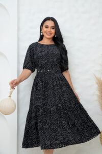 Nosso vestido midi em tecido viscolinho é a escolha ideal para quem busca conforto e estilo. Com manga curta, cinto ajustável e um caimento excelente, valoriza a silhueta e garante um look impecável para diversas ocasiões, desde eventos especiais até o dia a dia.